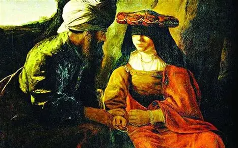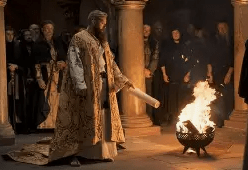 — two women appear; perhaps two entities: church and state? Or two missiles?