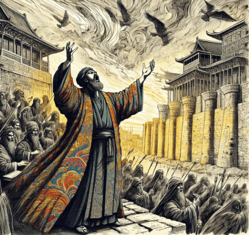 — a flying scroll is a divine indictment, a judgment swift and inescapable; a parallel scene of a book-scroll of what Ezekiel saw, in Ezekiel 2, “and in it was written lamentations and mourning and woe.”