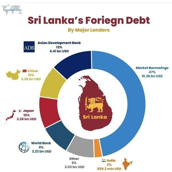 China is not the biggest lender to Sri Lanka. The following are the debts that Sri Lanka has: