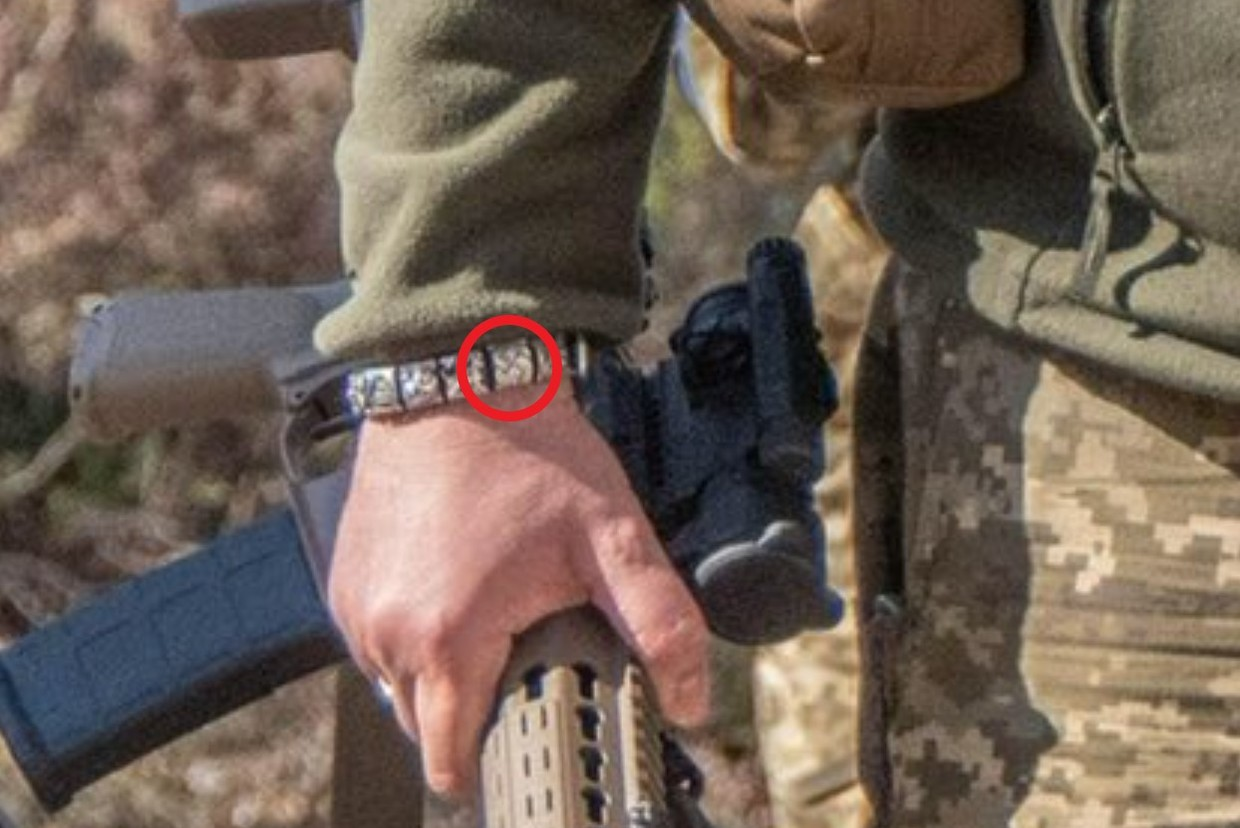 Adorning Zaluzhny’s wrist in the photo is a bracelet made up of multiple tiles, at least one of which features a swastika. The photo itself has been circulating online since at least March.