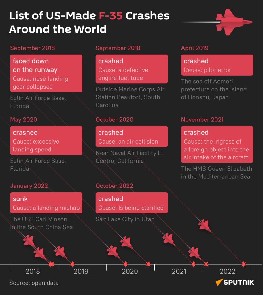 Check out Sputnik’s infographic to learn more about the incidents involving US F-35 fighter jets.