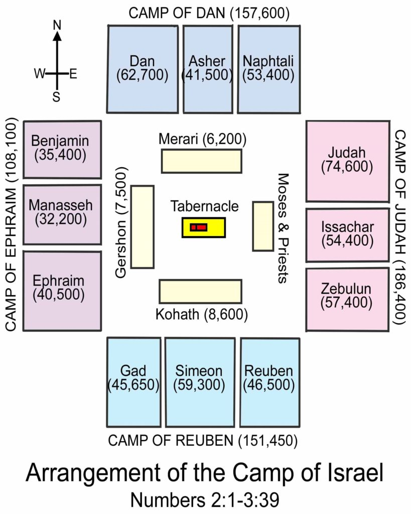 — then the camps that lie on the south side shall take their journey; the camps of Reuben, Simeon, and Gad, which were encamped on the south side of the tabernacle;