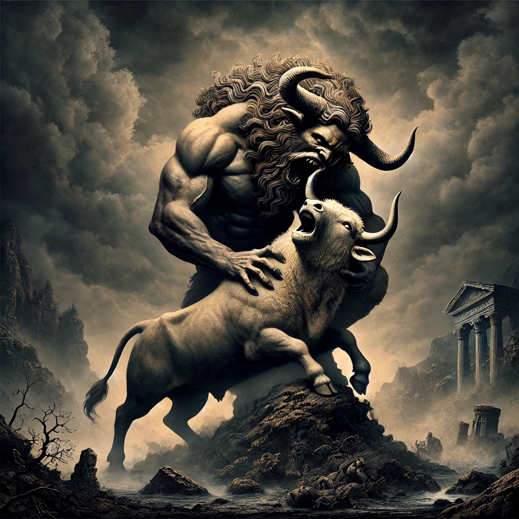 15 And Zepho went and he saw and behold there was a large cave at the bottom of the mountain, and there was a great stone there at the entrance of the cave, and Zepho split the stone and he came into the cave and he looked and behold, a large animal was devouring the ox; from the middle upward it resembled a man, and from the middle downward it resembled an animal, and Zepho rose up against the animal and slew it with his swords.