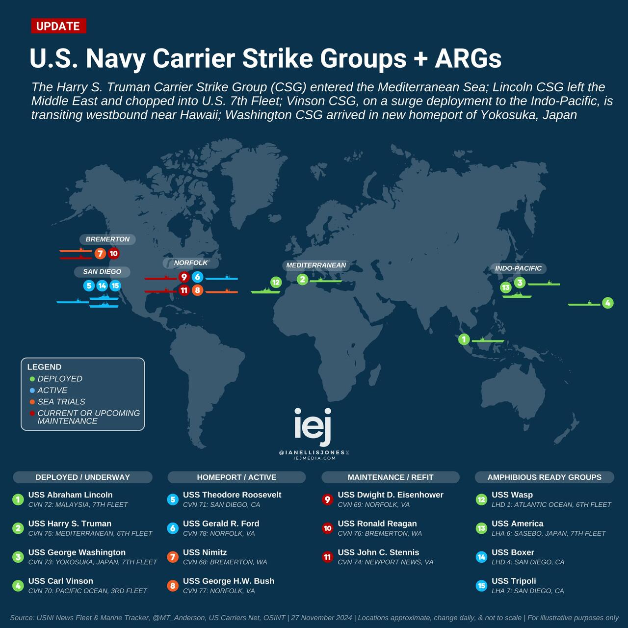 Here’s a look at where the Navy’s carriers are now: