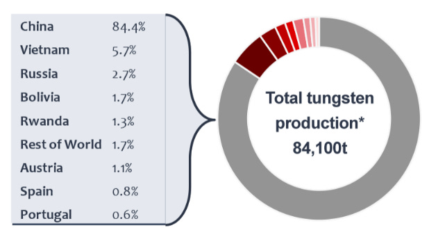 China accounts for about 80% of the world’s tungsten output, and there are concerns the government could add measures around tungsten scrap that would further constrict its availability.