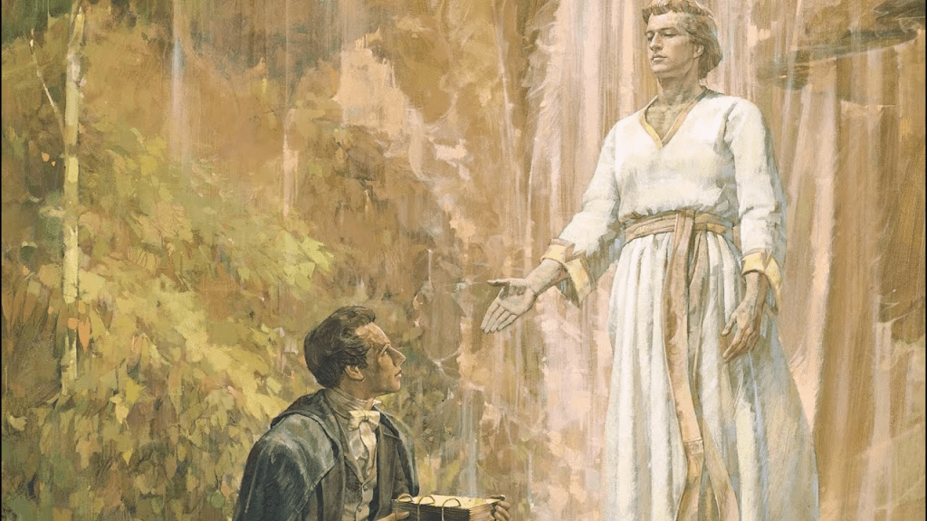 Prophet Joseph Smith began his vision with angel Moroni giving him the Golden Plates in a buried stone box at the Hill Cumorah in upstate New York situated a few miles from Smith’s boyhood home on a farm.
