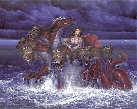Chapters 17 and 18 contain a vision of a beast, and a woman on it, and their riddles and interpretations for each; one of the seven angels that had the seven vials proposes to John to show him the whore of Babylon, named after ancient Babylon, which was seated upon the great river Euphrates.