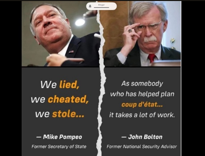 — this also sounds like a dramatic transformed deceitful Mike Pompeo CIA’s “We lie, we cheat, we stole” in bringing power, wealth, money and influence, unjustly acquired through “violence and deceit” into the houses of the Pentagon which they hope to get away with impunity, for the moment at least;
