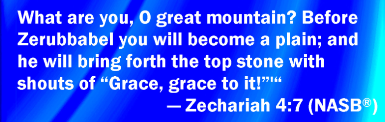 7 Who art thou, O great mountain? Before Zerubbabel thou shalt become a plain; and he shall bring forth the headstone thereof with shoutings, crying, ‘Grace, grace unto it!’” — this phase “0 great mountain” only used once in the Bible;