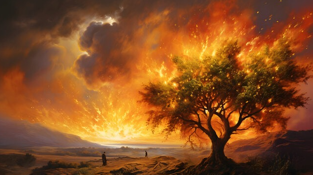 “And Zagnugael, the angel of the Lord, revealed himself to him in flames of fire from the midst of the bush; and he looked, and behold, the bush burned with fire, yet the bush was not burnt or consumed by the fire.”