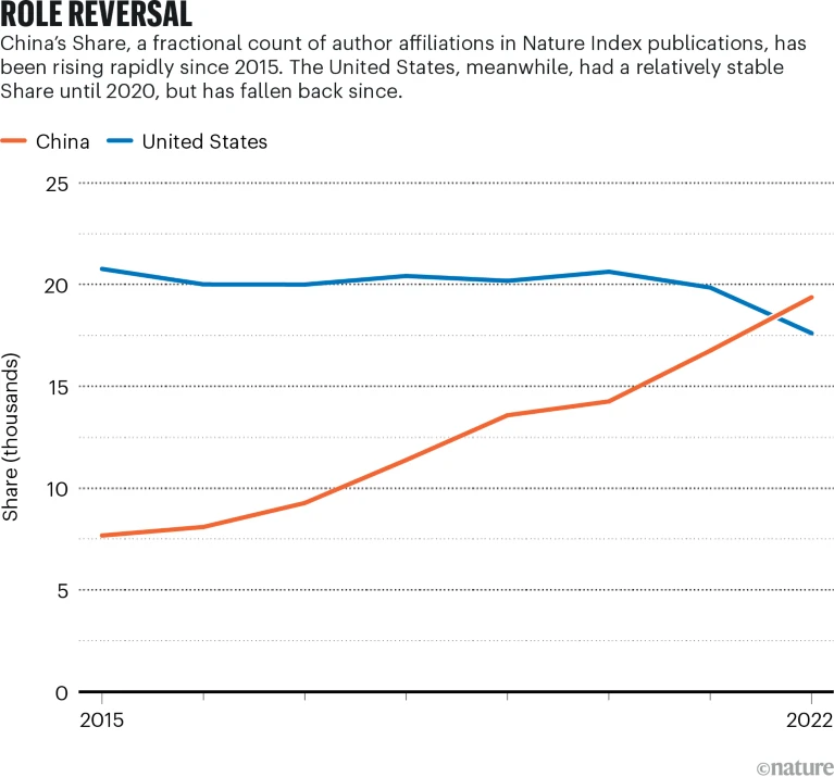 China tops US in quantity and quality of scientific papers Report finds rapidly expanding Chinese research footprint while Japan falters.
